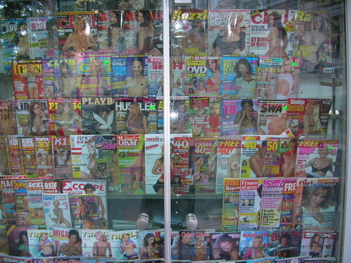 Это будка типа "Союзпечати" с газетками и журналами, так вот под журналами которые позиционируются на фото с низу под ними, находились журналы для ахтунгов в 2 ряда (в кадр не попали).