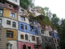 Тот дом, разноцветный, это очень известный объект, памятник и все такое еще до постройки. Я даже видел посвященный ему альбом. Архитектора, к сожалению, не помню. Дом современный.