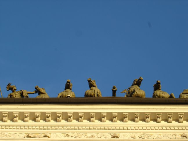 если только про лошадь предположить, что это на дворцовой площади на здании штаба?