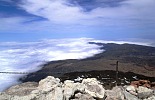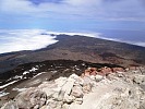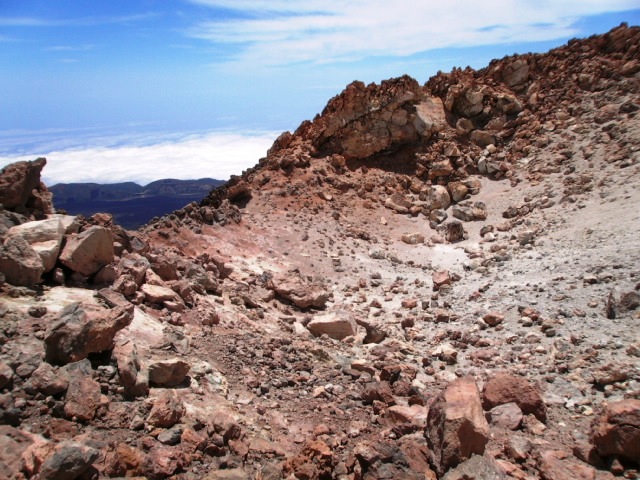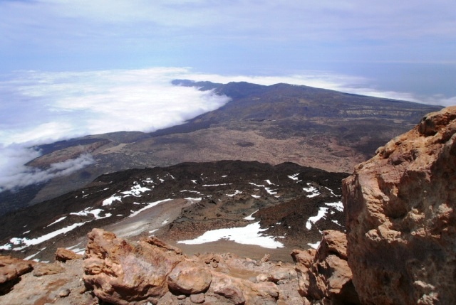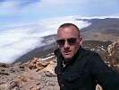 Я сразу же направился к самому вулкану Тейде возвышающимся над остальными горами, самая высокая точка куда можно добраться машиной это фуникулерная станцыя находящаяся на высоте около 2300м, откуда можно поднятся лишь по канатной дороге (в стеклянных кабинах) 8 минут, или пешком около 6 часов хода...верхняя станция находиться на высоте 3500м, где находиться смотровая площадка, температура в этой точке около 0°, ветер сбивает с ног, но солнце палит (интересный еффект), дальше дорога закрыта, охрана пропускает на вершину лишь по спец. пропусках полученных в оффисе заповедника в городе Оротава находящемся на северном побережье острова (раньше он находился в Санта Крузе), пропуски бесплатны и именные. Дальше начинается само приключение, подьем по крутому подьему, выложенному из камней . Каждый шаг дается с трудом, кислорода сильно не хватает - атмосфера очень разжижена, ледяной ветер и так не дает дышать, холод пронизывает (я то полез без всяких подготовок и приспособлений, хотелось испытать себя), ветер реально норовит оторвать от камней, ровно на ногах стоять невозможно и чем выше поднимаешься становиться все труднее....практически на 200 метров подьема ушол почти час, каждых 10 шагов приходилось делать привал чтоб отдышаться, в глазах темнело от нехватки кислорода , моя супруга и сын повернули обратно уже после 50 шагов, так я оказался совсем один на этой вершине, адреналин от этого колбасил вовсю, попав на саму кромку кратера смог наконец то увидеть саму воронку , к слову нe такую и большую , метров 150 в диаметре, немного под уклонон к югу, полностю запятнана желто -зелеными пятнами серы, хотя температура и низкая , сама скала горячая (вулкан то действующий) и в некоторых местах заметны небольшие выбросы горячего газа с недр горы.....с самой высшей точки открываеться фантастический вид на 360°, в безоблачную погоду виден весь Канарский архипелаг, я же видел небесный белый ковер окружающий остров, ощутил себя Зевсом на Олимпе - один над миром…..