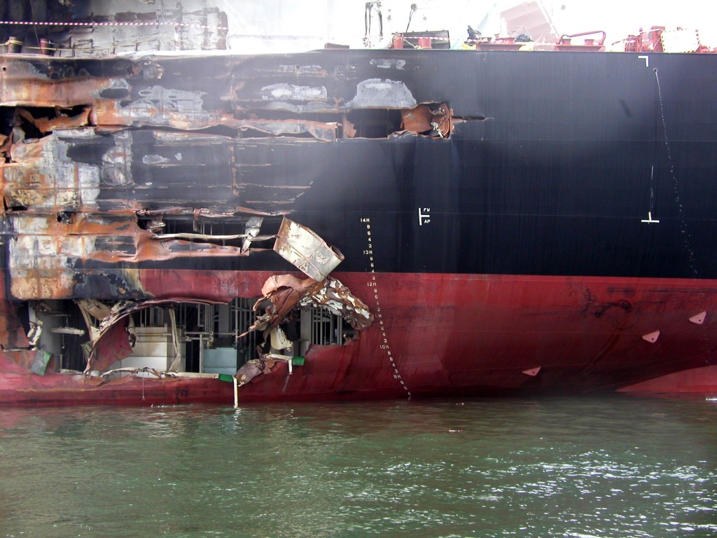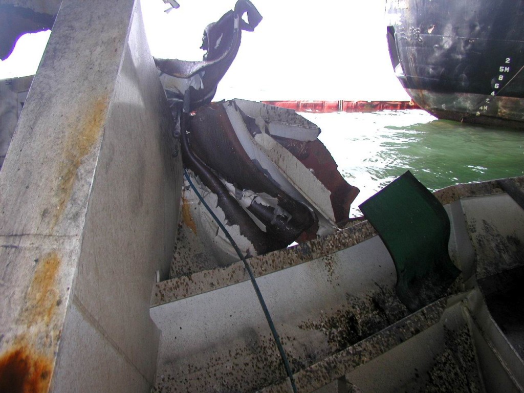 Точнее: «не было бы счастья, да несчастье помогло»! В Сингапурском проливе в нас врезается сторожевик береговой охраны, а мы, потеряв управление, пропарываем борт танкера. Тройное столкновение, бля! Хорошо, что ночью – под полубаком не было никого! А то бы запарились народ соскабливать с покорёженного железа!...