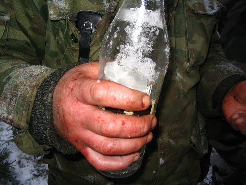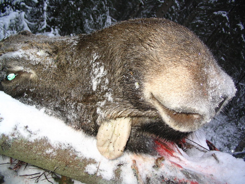 6085340Ага! Тоже видал, полшерепушки нахуй, как бритвой сохатый срезал. А дело так было, компания крайне новорусских товарищей поехала на лося, на хуй его знает какой день пьянки этих орлов пошли они наконец-то в загон. Кто лося положил я не в курсе, может и этот герой, кстати Блейзер у него был и прицел Люпольд, вместе штук на 10 килобаксов катит, ну и ешил он с лосиком сфотаться павшим...
