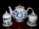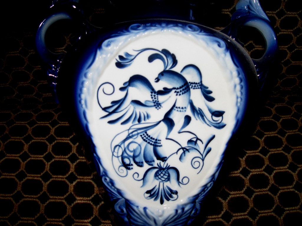 ..к сведенью. Это не гжель, это кобальтовая роспись. Кбальтом пишут только по ФАРФОРУ, с температурой обжига 1300 градусов. Майолика рядом не стоит.И это делалось на Урале.Выёбываться не собиралась, просили в гесте показать...что сделала.Эта мелачёвка которая задержалась дома...