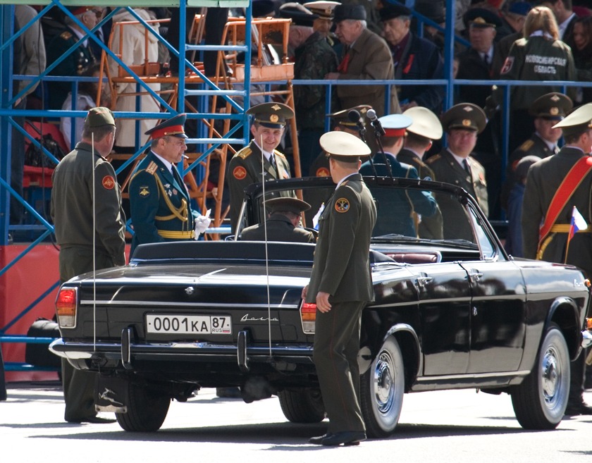 13.    Для выезда командующего парадом использовалась вот такая вот машинка. Издалека выглядит она вполне прилично, но при приближении возраст ее становится понятен.