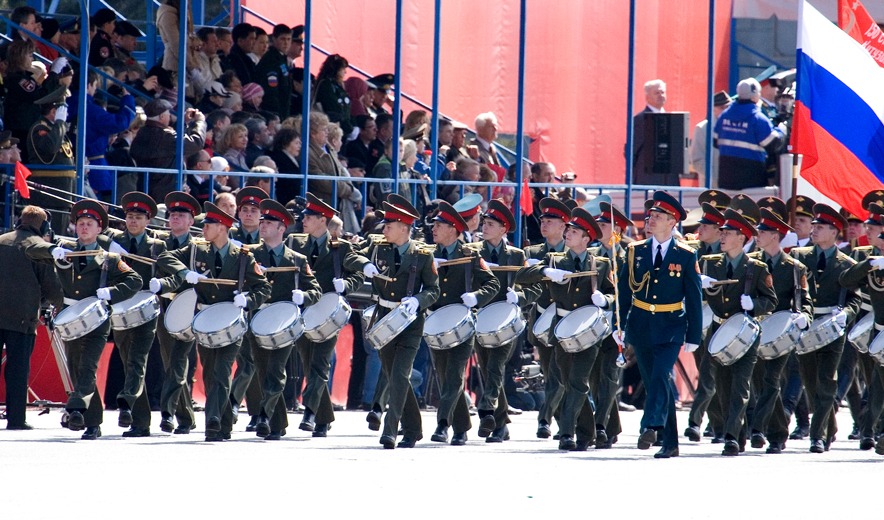 17.    После доклада об успехах войска пошли торжественным маршем. Как обычно, первыми идут барабанщики. Неплохо, кстати, прошли.