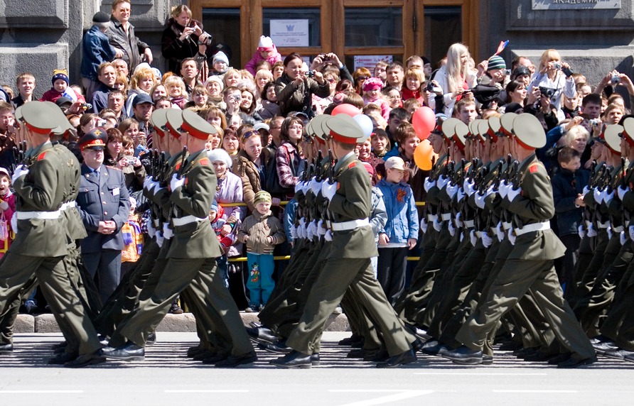 Например в Ростове-на-Дону, на тТеатральной площади сие мероприятие проходило, хуй какой простой смертный мог прорвацо на такое место, что бы вот с таких ракурсов пофоткать. Думою, что в Новосибе ситуёвина не лучше, сильно бояцо власти народа. А ну как неарод фсю эту бронетехнеку захватит, та пойдёт давить кхуям трибуны с одменистративным аппаратом?