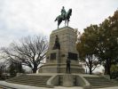 Размышляя над подобным парадоксом и не без боли расставшись с портретом напудренного Вашингтона, я, наконец, отправился обозревать носящий его имя кишлак. Первая достопримечательность, которую я встретил на своем пути, оказалась конной статуей какого-то доблестного генерала Джорджа Томаса. Бросившись фотографировать сие творение со всех возможных ракурсов, я еще не знал, что к концу моего пребывания в Вашингтон ДиСи эти конные, пешие, стоящие и сидящие генералы, командоры, полковники и прочие американские воеводы достанут меня, как женские половые губы – гинеколога-стахановца. Гуляя ранним утром по столице Североамериканских Штатов, я убедился, что проклятые гринго очень бережно относятся к своей истории. На каждом шагу у них натыканы различные монументы, большинство которых относится к гражданской войне девятнадцатого века. Напомню, тогда голозадые северные буржуины одолели вальяжных южных плантаторов под благовидным предлогом освобождения чернокожих от белого ига, а на самом деле – с целью поправки собственного экономического положения. Не будучи силен в американской истории, так и не сумев запомнить, кто там носил серые мундиры, а кто – синие, я все же предположил, что большинство увиденных мной каменных и бронзовых мужиков и баб представляют победившую сторону. Были там и артефакты других эпох: чуть позже я имел удовольствие созерцать мемориалы Вьетнамской войны, похожие на увеличенных до натурального размера и выкрашенных бронзовой краской детских солдатиков.