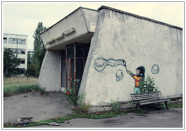 особенно поразили граффити на стене, тени людей, как у Брэдбери в "Марсианских хрониках", "будет ласковый дождь"...