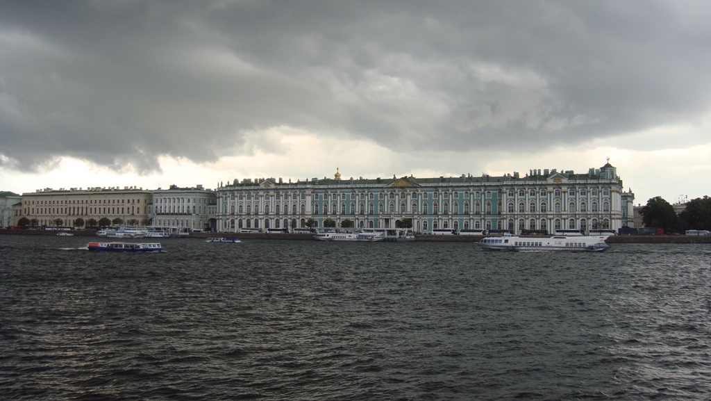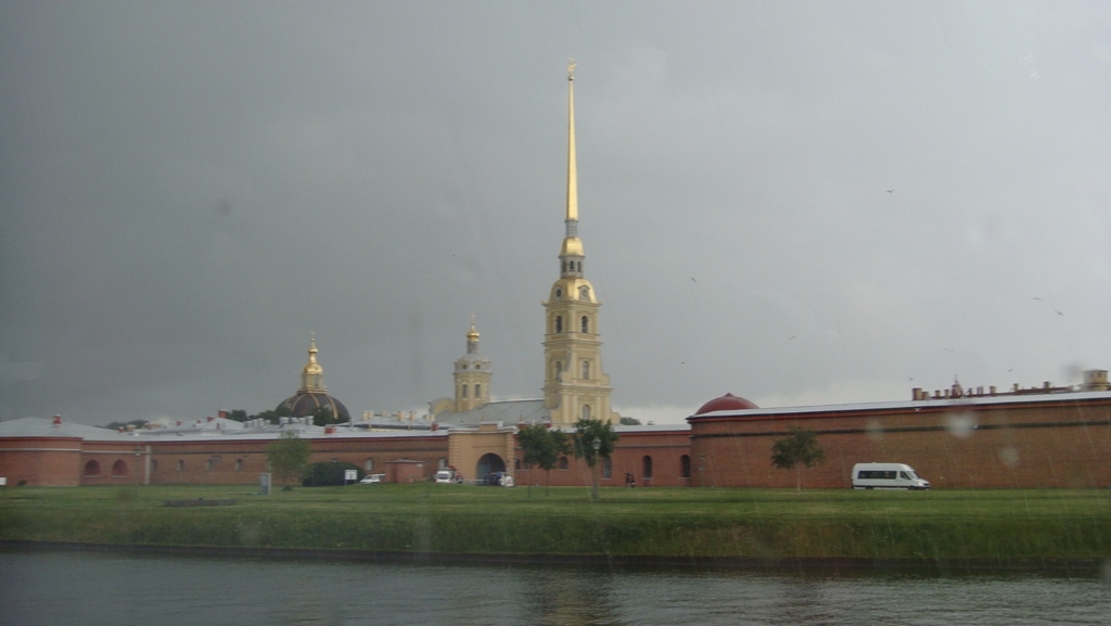 Санкт-Петербург встретил нас приветливо, но, видимо, чтобы были в тонусе и не расслаблялись, в первый же вечер промочил таким ливнем, что ручьи текли по мостовой – шагу негде ступить. Зато я вспомнила деццтво и шлепала по воде, забыв об обуви. Свинцовые тучи и холодный ветер с залива- само собой разумеющаяся погода в Питере, но нам повезло: все остальные дни было сухо, солнечно и прохладно. Именно то, что доктор прописал (с). Правда, накануне отъезда снова попали в дождь, но тут сами виноваты- засиделись в парке на детской площадке, хотя видели, что черная туча заходит.  Ничего, не размокли.