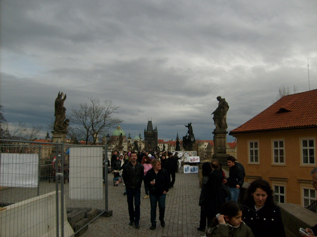 С Карловым мостом я был знаком только по фильмам, и не представлял, сколько народу в течение нескольких минут проходит через него. Очереди в Мавзолей - ничто по сравнению с толпой толкающейся в давке в попытки перейти Влтаву. Оглянувшись, я с тоской посмотрел на собор Вито – в первый раз мы проскочили мимо него, потерявшись в мелких вьющихся малостранских улицах. Из-за черных туч снова выглянуло солнце, и в его лучах темная громада собора поплыла над Прагой, гордо взметнув в небо свои готичные баши. На мосту засилье художников, шаржистов, музыкантов, торговцев всякими мелкими прибамбасами –сувенирами, просто шалопаев, попрошаек, карманников. С моста удивительный вид на Влтаву, больше всего меня удивили плотины поперек реки, вода пенилась и билась о ее стены. А на берегу небольшой речки Чертовки, видно колесо водной мельницы. Краем уха я подслушал у русскоязычного гида, что это остров Кампа и я не знаю, откуда у чехов столько самоуверенности, чтобы этот район называть пражской Венецией. А на другом берегу прямо над бегущими водами стояли несколько домов. В одном из них раньше были бани, а теперь дискотека, самая крутая в Европе, ну почти как у нас в Питере «Метро». Еще раз, с сожалением оглянувшись на Пражский Град, мы спустились вниз и, минуя Клементин, пошли дальше, задача у нас была попроще – дойти до Старого Места и устроить там пивное веселье.