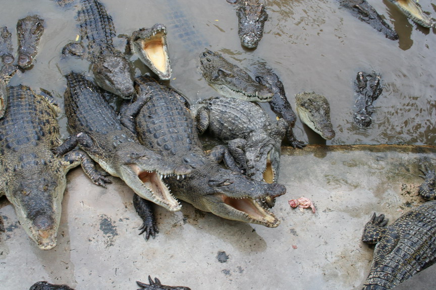 16. Этих уродцев тайцы тоже неспроста держат. Во-первых, туристы на них ходят лупятся. А, во-вторых, - яд, настойка, мясо, кожа стоят ахуенных денег.