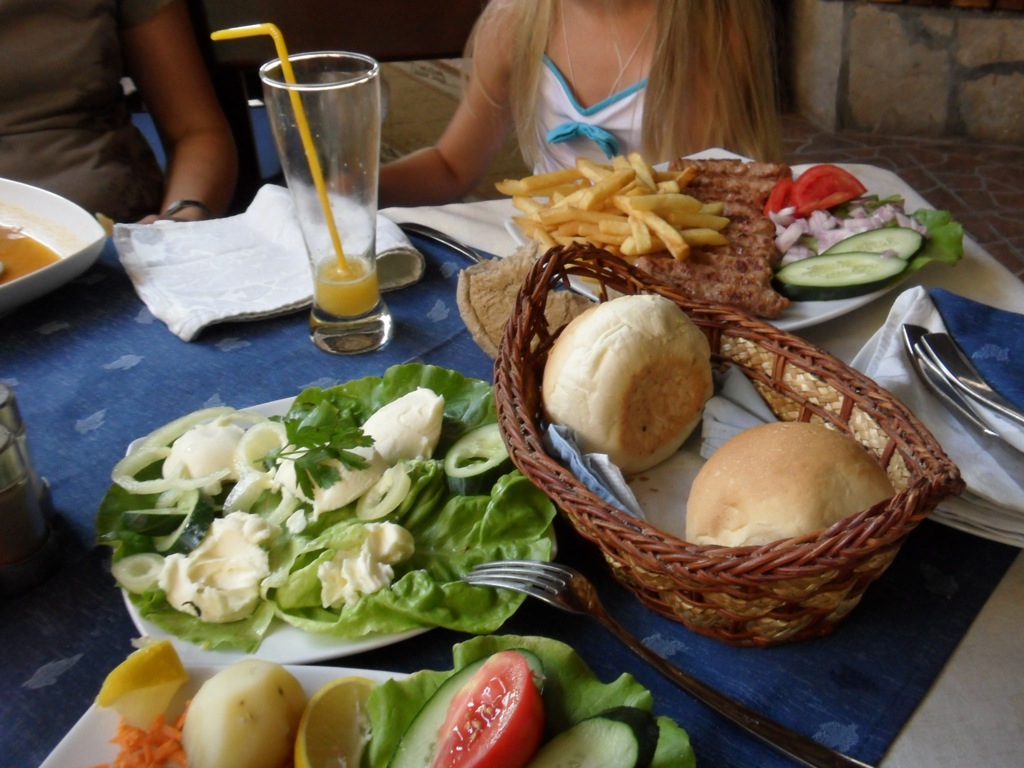 Вообще, общепит в Петроваце порадовал: вдоль пляжа расположены кабаки с большим выбором морепродуктов. Цимес в том, что местные рыбаки, поймав что-то, сразу мчатся сдавать улов в кабак. (При мне какой-то мужик поймал здоровенную зубатку килограмм на десять и тут же продал ее в ближайшую столовку. Почем, правда, не сказал, но, судя по довольной роже, рестораторы его не обидели…). Так вот, данная логистика очень удобна – лежишь себе на пляже и посматриваешь в сторону кабака. Видишь – чего-то несут. Подходишь, интрересуешься. Если устрицы или барабулька – резервируешь столик и в удобное время жрешь заказанное, запивая белым винцом «Крстач». Стоит все это удовольствие порядка десятки на человека. Это если ребенка не баловать. Кстати, мороженное в Черногории охеренное. Наш советский пломбир живет и процветает в этой горной республике. Назывется «сладолед». Только щас понял, что, наверное, это не устрицы свели на «нет» мои потуги похудеть… Столько мороженного я не ел раньше никогда…