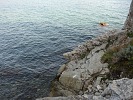 Как наверно уже догадались, справа от меня плескалось Адриатическое море. А слева поначалу шла скальная стена, а потом открылся симпатичный хвойный лесок. «Грибы !» - мелькнуло в одурманенном мозгу, и я зашел в чащу в поисках чего-нибудь этакого, грибного, бля. Благо, сезон и настрой соответствовали.