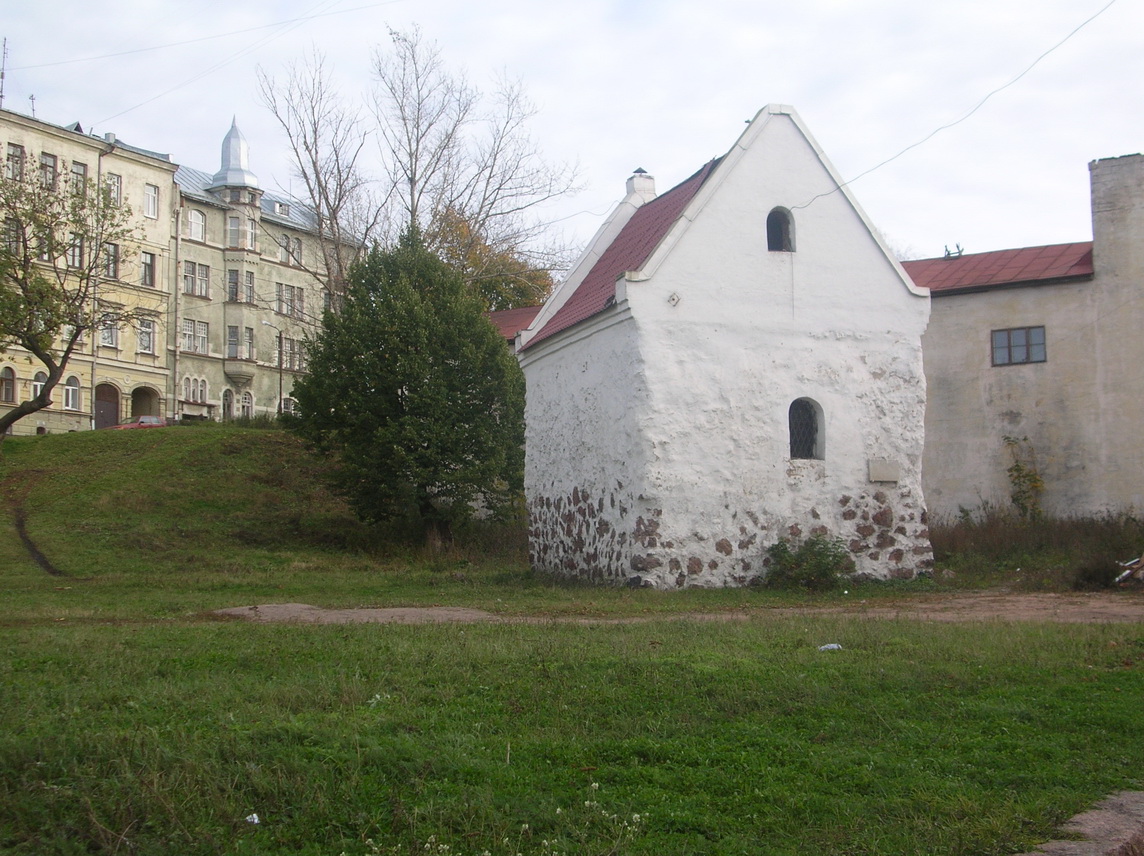 Кароче, говорят, что в феодальные времена в Выборге царь ебанул налог на солнечный свет, и поэтому окошки такие маленькие в подобных зданиях. Их 2 или 3 в городе осталось.