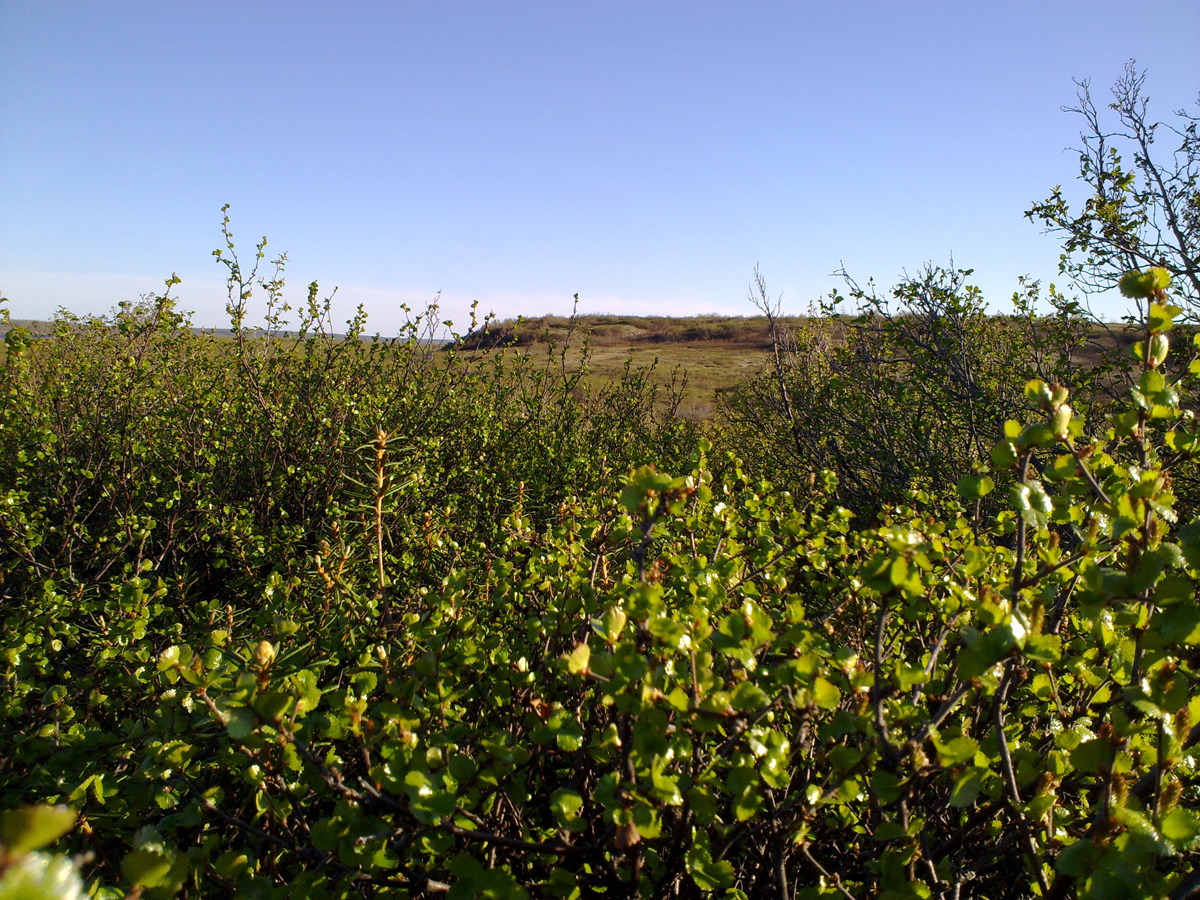 Когда исчезли из вида признаки присутствия людей, стихли чужеродные дикой воле звуки, я остановился и по обычаю, принятому еще в детстве, мысленно поздоровался с Тундрой, попросив ее быть сегодня хоть немного благосклонной к своему обожателю. Вторая половина августа, конец лета. Уже совсем по «материковски» есть день и ночь. И погода становится все более промозглой, с постоянными холодными ветрами, и возникающими из низкого, тяжелого неба, дождями. Все явственней ощущается запах осени, запах предвестницы долгой, временной, темной смерти. Хозяйки этих мест – зимы. Ветер дует сильно и постоянно, кусты вокруг даже не колышутся, а просто пригнулись в его направлении, и когда идешь ему навстречу, то кажется что воздух сильно сгустился и тебе приходится с силой упираться, чтобы преодолеть его сопротивление. Зато когда он дует в спину, есть ощущение, что тебя кто-то постоянно поддерживает, даже возникает мысль, что можно просто вот так присесть на эту упругую воздушную подушку, и идти становится легко и свободно.