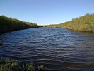 Опять ВиМ получаеццо, букаф многа, опущу другие подробности. Как набрел на огромную поляну с морошкой, как обожрался ею и голубикой до тошноты, как двигаясь прожорливым комбайном за ягодой, умудрился попасть в глубокий карман, где путь домой мне перерезало озеро, а обойти его не представлялось возможным, по причине непроходимости кустов вдоль впадающей в него речки, а потому пришлось делать обратный крюк километров в пять…
