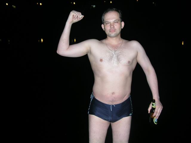 Ровно в 2.00 пробило время «Z»: купание в Крылатском ночью мне всегда казалось лучше чем днём…Тудыть и ебанули: холодная вода освежила наши измотанные пивом чресла (тем более что нашу, в начале неебаться (24-30 бутылок, кстати никхуя не карлыберги: Бочкарёва св./Несвкага св., не теряя, таскал Броненосец Буга-га-га!)….
