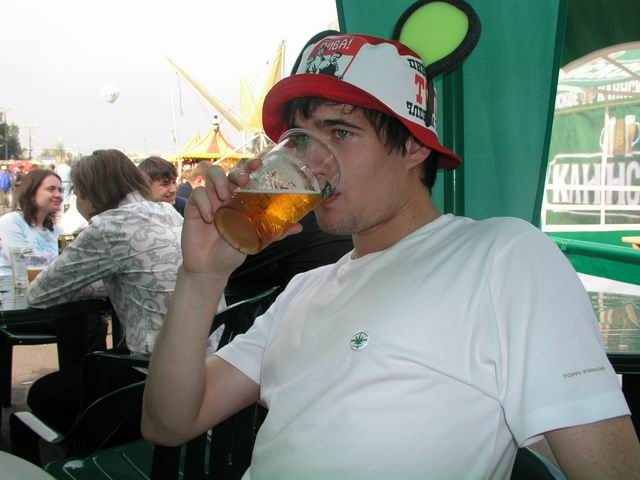 ЁПАНА В РОТ!!! Мы рядом сидели, я почти в кадр попал в этой палатке тубарга, там еще пиво зеленое и обычное предлагали, тока они на вкус нихуя не отличаются - из одной бочки наливают.