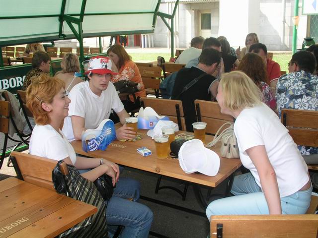 Первым на пути нашей минитусы из трёх человек случайно оказался павильон с «Carlsberg»ом.