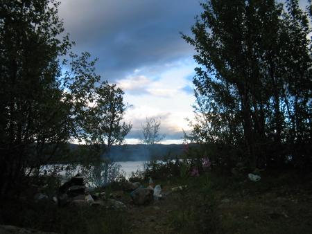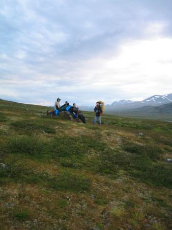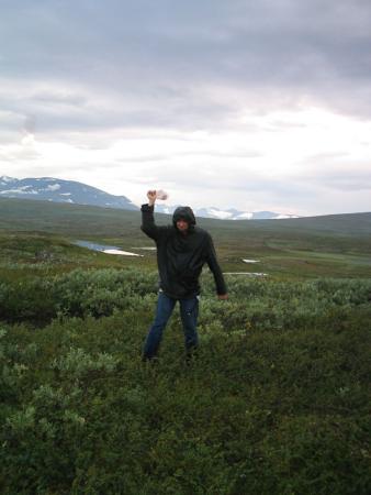 День на третий повстречали мы на нашей тропе одного человека. Оказался швед. Простой как валенок – свой короче в доску пацан. Что характерно по фамили он был Ericcson - наверное как «иванов» и них там фамилия. Но не в этом суть. Говорили мы с ним на английском – ибо по шведски мы пока ещё не фонтан. Ну и он нам типо говорит: слышь чуваки – поменяйте или продайте жрачки мол – я тут на одной рыбе уже пятый день (а спининг у него пиздатый – японский), жратва типо закончилась а в сторону Квикйокка ещё три дня шпарить. Ну а у нас такая ситуация сложилась что один человек прямо перед всей нашей поездкой спрыгнул и осталась жрачка уже закупленная на него. Тоесть жрачки у нас хватало слихвой – ну мы ему и говорим : Николас (так его звали) – давай сделаем чейндж. Ты тут типо местный, ты нам местность покажи по человечески недельку другую, а мы тебя на довольствие к нам поставим со всей хуйнёй. На том и порешили – круг сделаем по нац. Парку – в квикйокк с другой стороны обратно и выйдем (маршрут изменили немного). Стало у нас одним человеком больше. А чувак оказался не простой – работал он в свои 25 лет дальнобойщиком, причём в полугодовом режиме. Тоесть пол года работает дальнобойщиком – в камазе своём живёт а другие пол года по природе шарится по национальным паркам всяким, в отпуск на недельку другую домой к серстре раз в году, там ему цивилизации хватало по уши, и обратно в леса безкрайней швеции на полгода. Такой вот простой чувак.