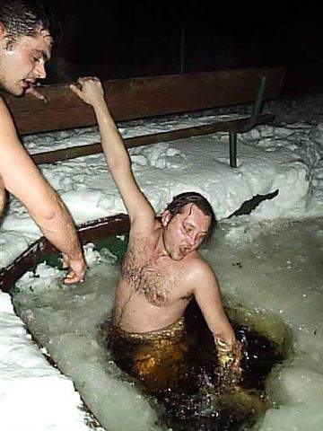 Странно... На второй фоте у человека который не в проруби изо рта хуй растет.