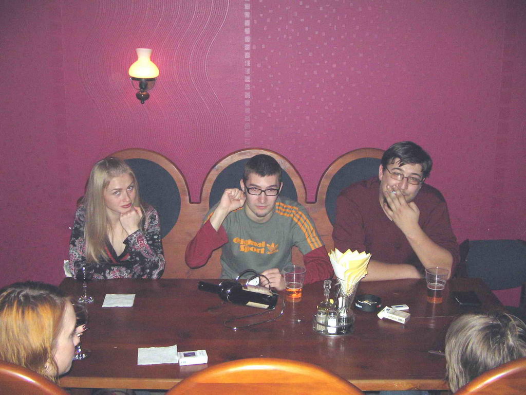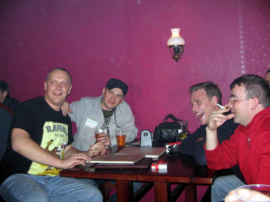Действительно, помещение оказалось оптимальным для проведения подобной акцыи, как по расположению, так и по формам. То, что было тесновато, многим даже понравилось, оно сближает. Хотя те, кто хотел спокойного общения и гастрономических удовольствий просто застолбили столики за углом в тихом месте (как мы с Ментом, гыгыгы). Да, видно, и не ожидал никто такого наплыва фанатов контркультуры. Очень понравилась атмосфера «Падонского братства», царившая с первых минут (ещё за час до тусы, до прихода Удава, на улице у входа было отмечено массовое братание падонков разных возрастов, регионов и социальных групп). Несмотря на агрессивную ориентацию большинства участников на «Ацкий отжыг», всё прошло достаточно мирно, никого всерьёз не отпиздили, а если кого и выебли, то по любви (шютка юмора). Жаль, что организаторы проебали такой важный момент, как бейджи с ником. Хотя, большинство падонков знали друг друга если не вживую, то по фоткам, что сильно упростило процесс единения.