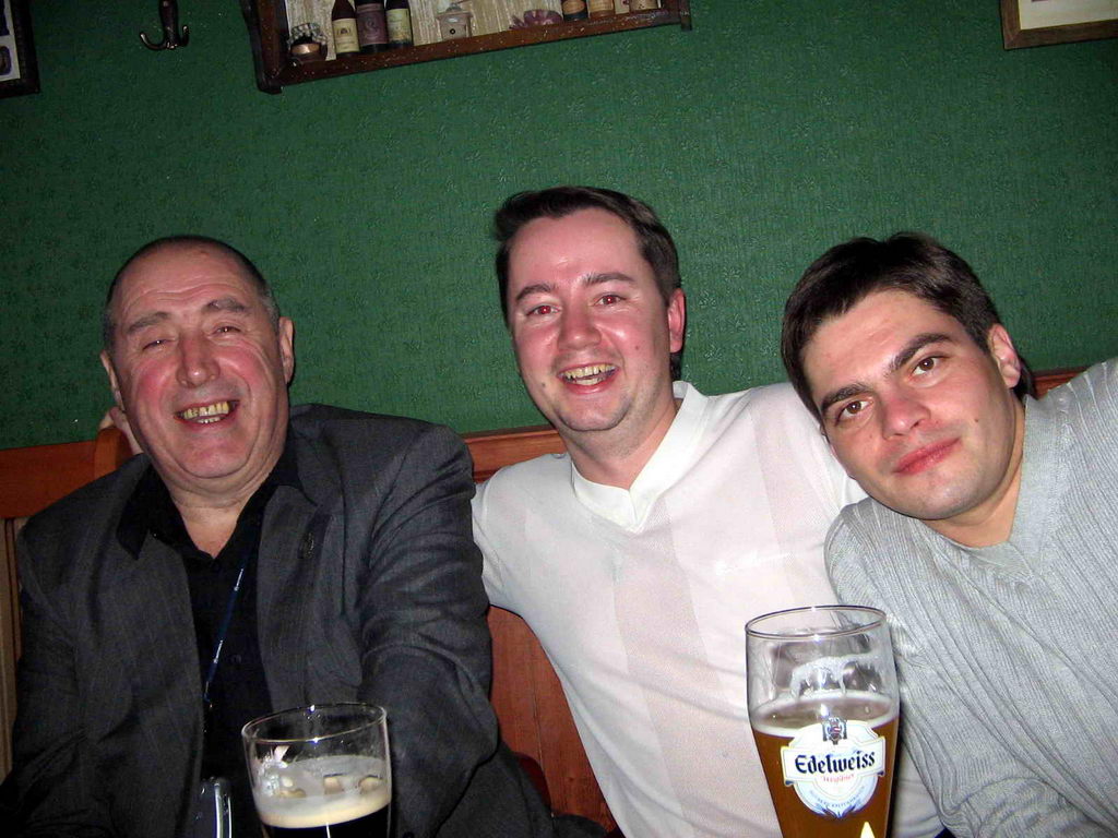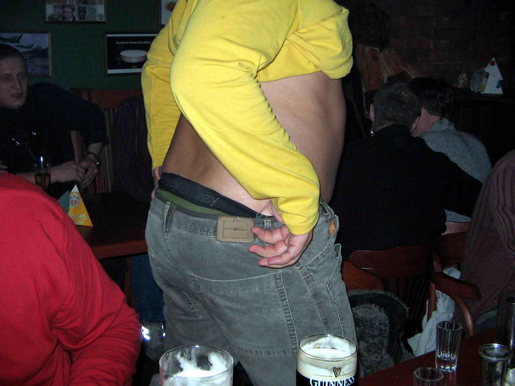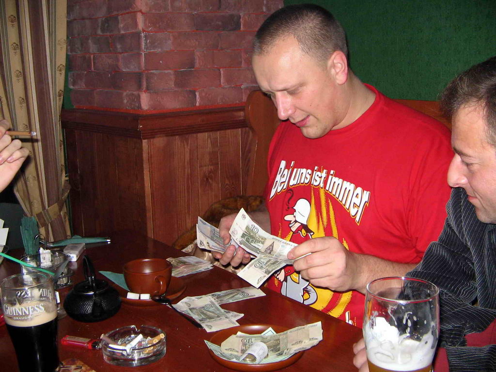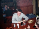 Началось всё вполне пристойно, за полчаса до срока Удав с группой близко живущих камрадов заняли первые столики, сдвинули их в один и культурно заказали «по Гиннесу». Должен заметить, что хитрый Удав вновь продемонстрировал себя абстинентом. Постепенно, в течение часа-двух, толпа благополучно заполнила снятый зал, столы стали сдвигаться во всё более длинную колбасу, а действие плавно перешло из стадии «слово за слово» в стадию «хуем по столу».