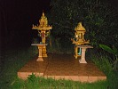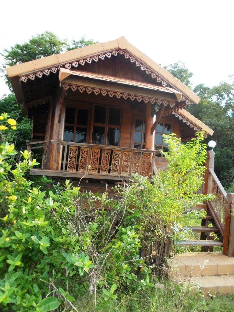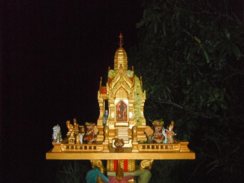 Непростое место. Обычный «домик духов», который стоит у каждого тайского дома, здесь размером чуть не с придомовую часовню, и каждый день, каждый час он любовно протерт и ухожен, всегда свежая вода, свежие фрукты, благовония… кто, как? А в доме – два изваяния королей, одно позолоченное, другое червленое: Рама Пятый, почитаемый Святым королем, и Рама Девятый – нынешний, да продлит Будда его благословенные дни на земле в радости. Кому принадлежит земля на холме? Секрет.