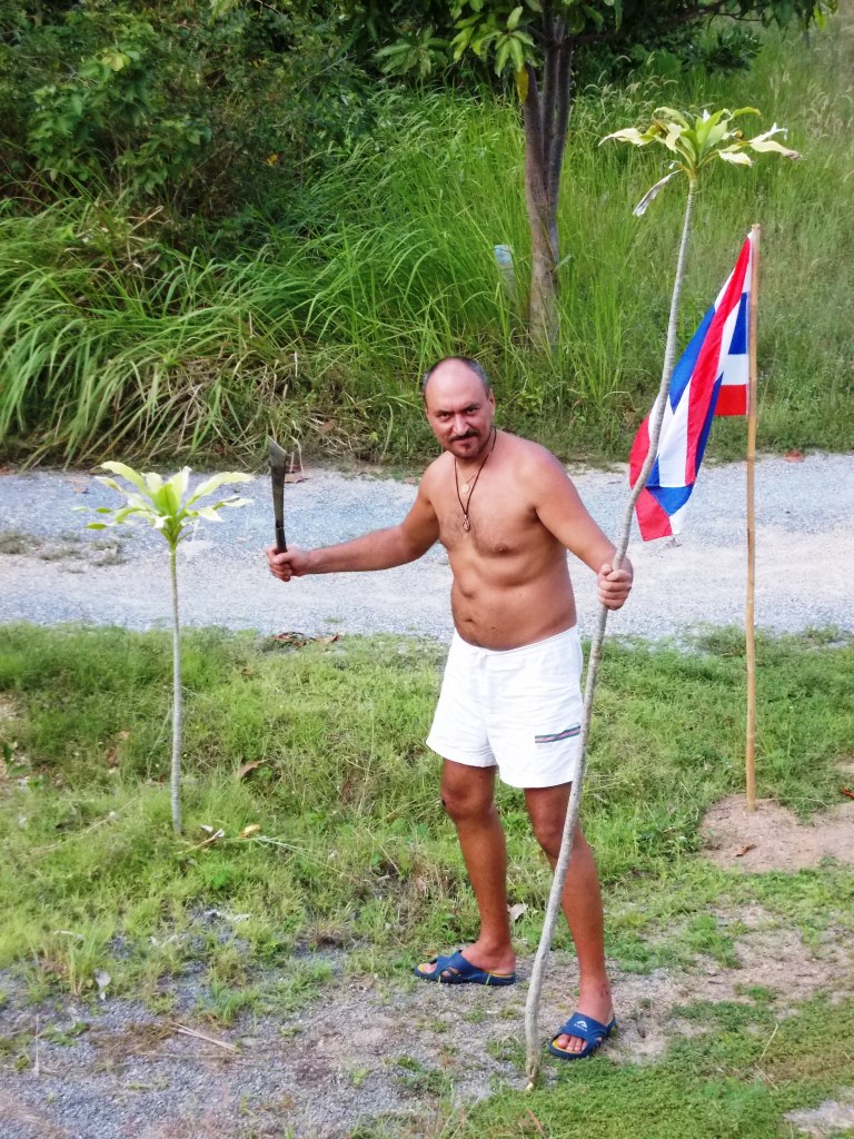 Пеак – молодой 19-летний тогда мальчишка, только что женившийся – остался. Сохранил за собой свой кусок берега с прилегающим маленьким полуостровом, построил там дом, бар, позже – завел единственного на острове коня (этого коня MN отспорила у Пеака на «слабо» в новогоднюю ночь – скоро погоним через пол-Самуи к себе на холм. Только шляпы с пером и шпаги недостает – а как бы славно было поскакать на нем в Севен-Элевен за ящиком «Сангсома», тысяча чертей и каналья!)