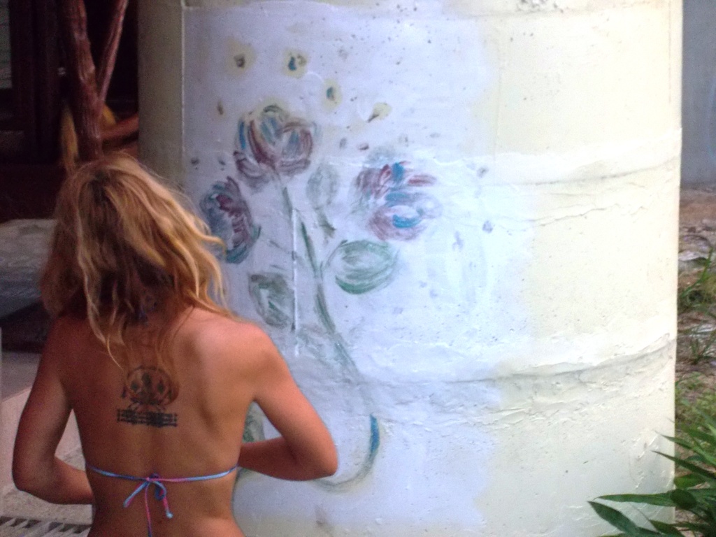 P.S. А из ремонта нам осталось только – дальнюю бетонную колонну расписать красками. Хочу – под портал, ведущий в прямо космос или, там, в пятое измерение. Есть художники соответствующего стиля? Приезжайте – поселю бесплатно в этом домике. Свежие фрукты, хрючило, марихуана и быстрые inclusive. Краски, кисти, палитры и пол-литры – все будет.