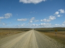 Щас открываю первую же фотку - ебааать! Если б не подсказки афтара и непривычный дорожный знак, подумал бы, что фоткали где-то в районе Орска или Беляевки. Обычный оренбургский, как это сказать, проселок? не, нихуя не проселок. Это под Рязанью проселок, а у нас на таком автобане можно и сто пятьдесят в час выжать, если видимость хорошая и встречных нету.