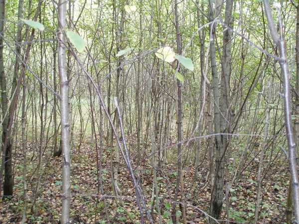 2. Приехали. Справа – старый смешанный лес, слева – посадки-самосев, лет за 10 на заброшенном поле вымахали дебри.