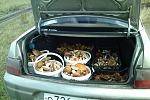 Два взятых с собой ведра были накиданы буквально мин за 15-20,прищлось возвращаться к машине,перекладывать «улов» в ящики.Кстати по светлому автомобиль своим ходом был благополучно вызволен из канавы и припаркован на ровной,травянистой поляне.Но ехать на то место ,которое изначально было в планах,мне показалось бессмысленным.Некоторые встречающиеся экземпляры были смачно обгрызаны какими то подлыми зверьками.Сей факт зато подтверждал то,что грибы полностью сьедобны.