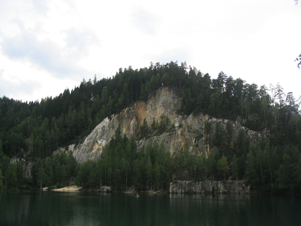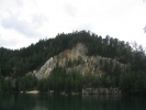 Вада в озере зиленая - значет это какой-то провал недавний. Может шахта какая старинная обвалилась, может оползень заблокировал ущелье и его затапило. Кароче, хде-то я подобное ужэ видел!