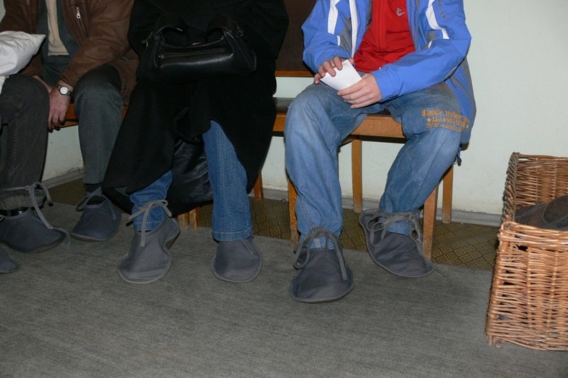 6. Такие бахилы выдают паломникам с двоякой целью: во-первых, штоб паркет не портили пидарасы, а во-вторых, штоб за одно ево (паркет) натирали до блеска