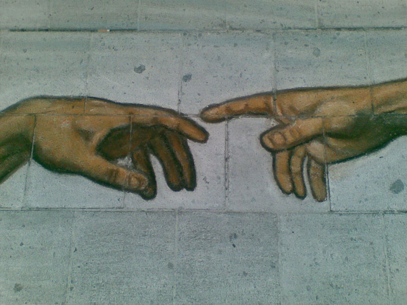 35 – уличный художник рисует мелом на асфальте микельанжела из ватиканского собора