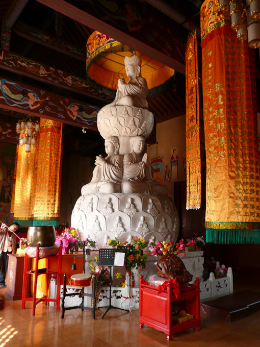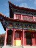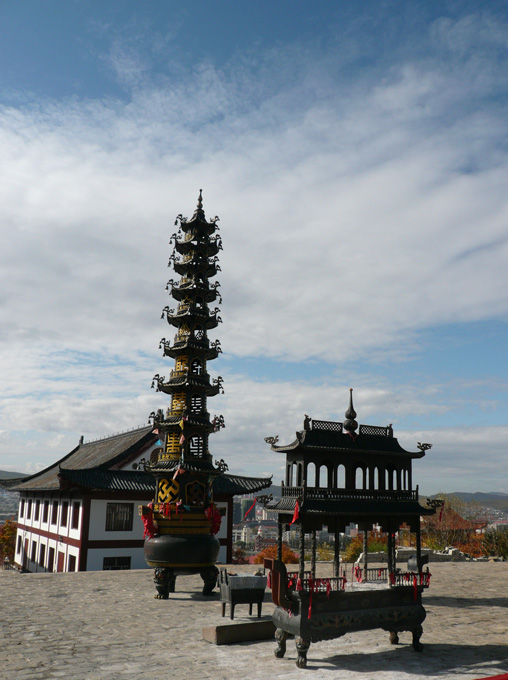 Каменные драконы, львы у входов, курильни во двориках, свастика на башнях. Бронзовые статуетки в монастырском магазинчике. В общем - смотрите.