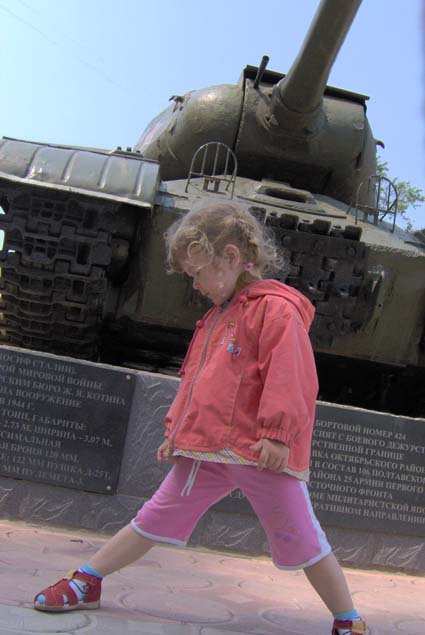 В Сергеевке (приблизительно там же) такой же стоит. Сам на постамент заехал. Верхние люки в нем заварили, а про нижний забыли. Мы пацанами в него залазили и башню в сторону штаба дивизии поворачивали... пару раз от всяких дежурных пи&$%лей получали, так как пушка в танке была абсолютно рабочая!!! ;-)