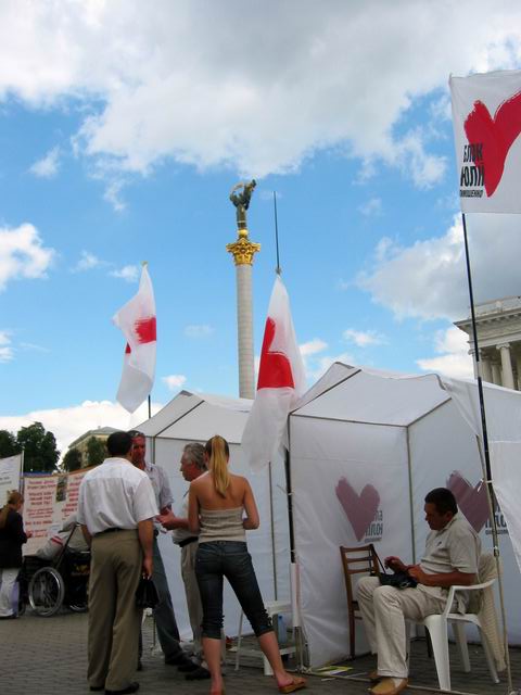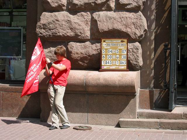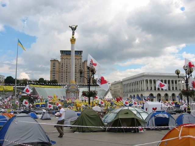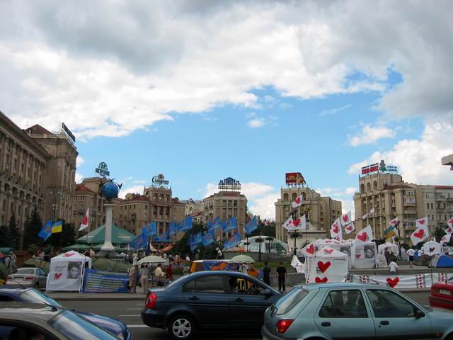 понятным к доллару и к рублю обменным курсом, огромным количеством праздношатающихся по крещатику и бесплатным цирком на майдане,