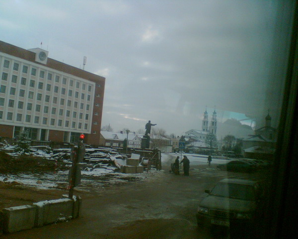 Автобус выезжает из Менска минуя прэкрасный ж/д вокзал (еще раз хвала ЛУчезарному за ежедневную заботу о простых людях!), театр музкомедии (или типа того, боюсь спиздеть), примыкающие к перекрестку улицу Немигу, с которой связан ряд мрачных историй, и с другой стороны место кровавого разгона мирной демонстрации 25.03.2006 г. после очередных перевыборов ЛУчезарного, дальше по пути, кто не полениться крутить башкой, может заметить старинное Кальварийское кладбище, прэкрасный Ледовый дворец (хвала ЛУчезарному за ежедневную заботу о простых людях!).