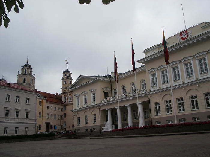 9 – дворец губернатора при российской оккупации, до того кажиццо архиепископа, теперь дворец летувисского президента, слева с башней - здание университета.