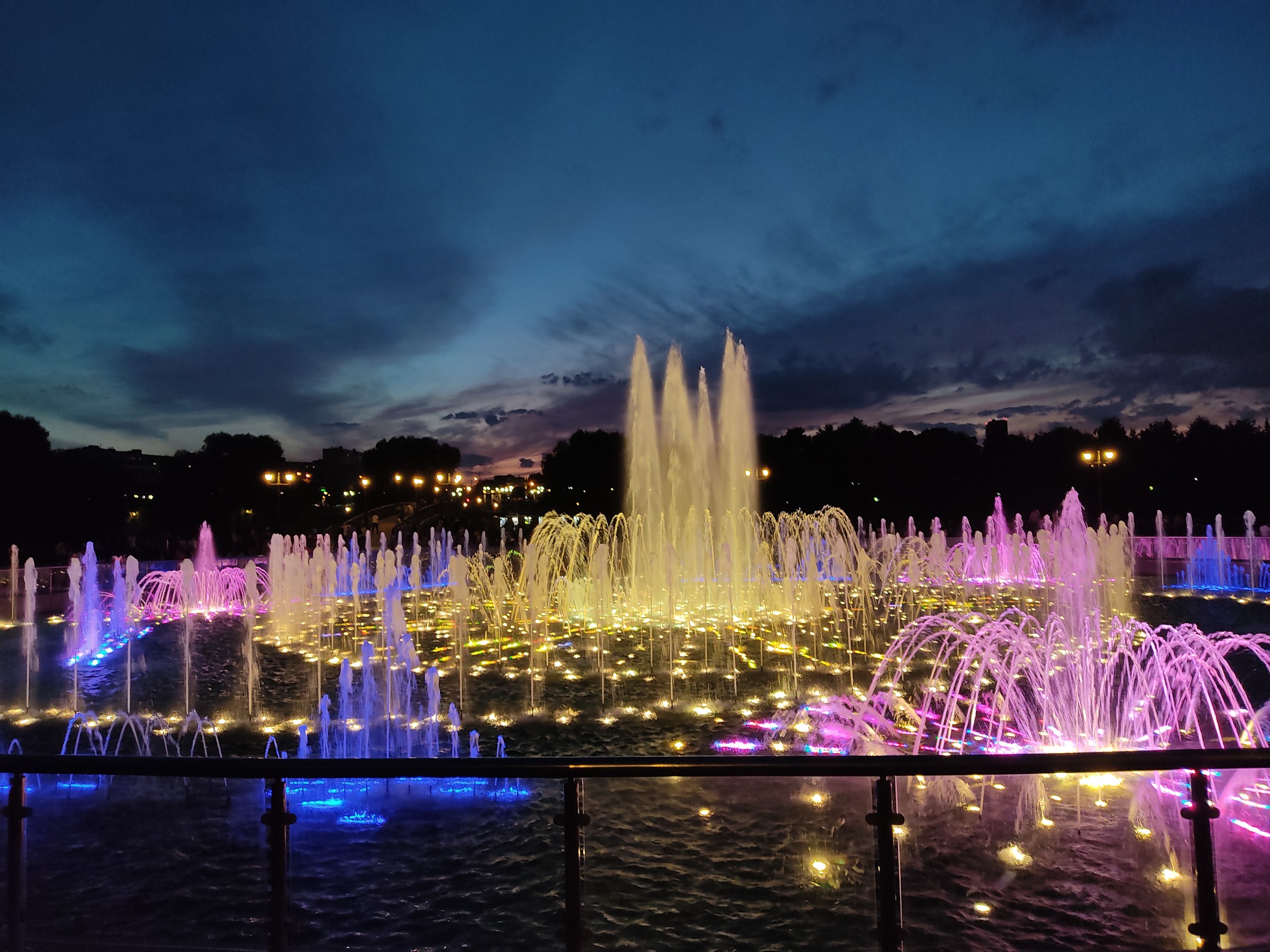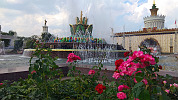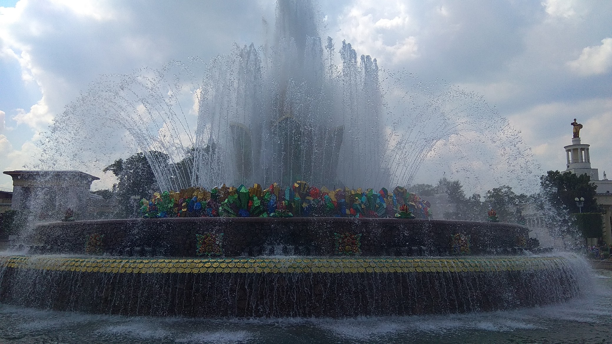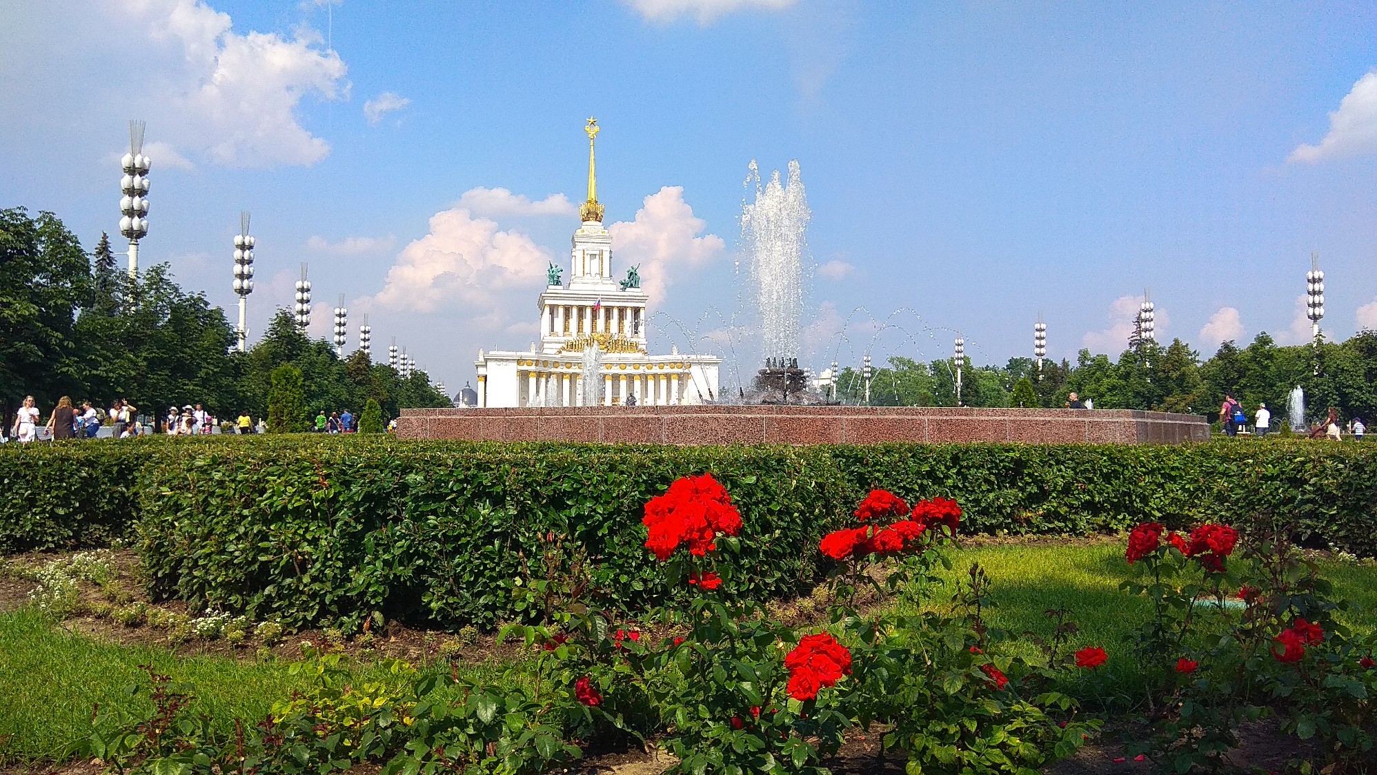 Они меня сфотографировали на фоне фонтана Дружбы народов.