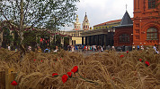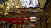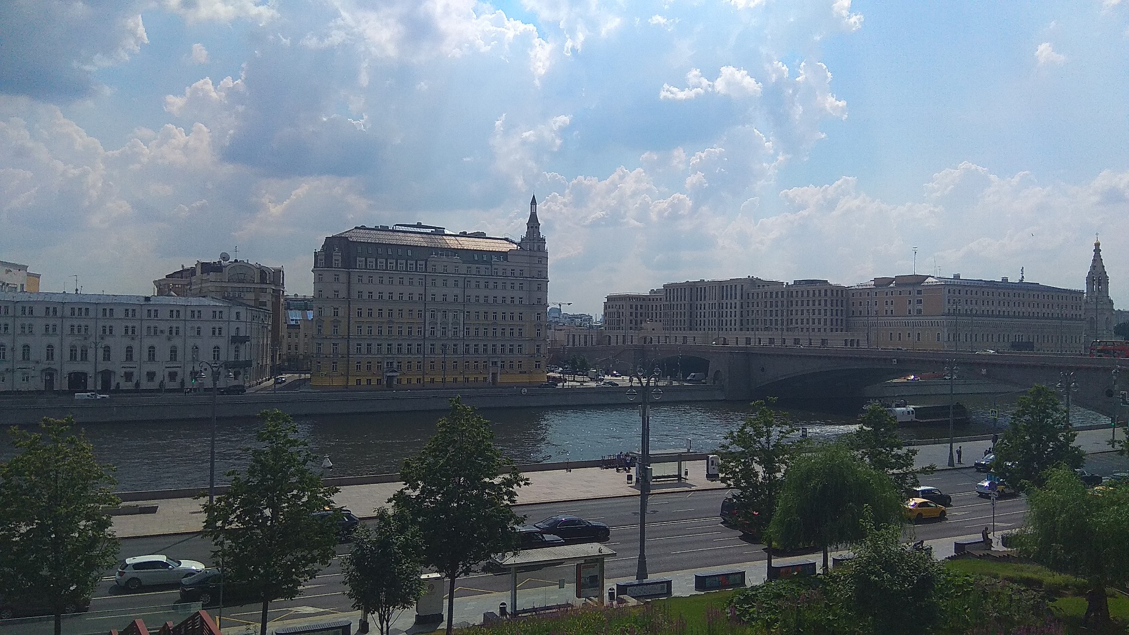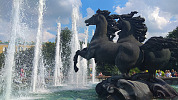 Учитывая краткий срок пребывания, надо было успеть метнуться по «классическим экскурсионным местам». Сначала поехали, конечно, на главную площадь страны – погуляли по окрестным улочкам, поели знаменитого (трендового, ога) мороженого в ГУМе, приняли освежающий душ из поливальных машин на самой Красной площади. Это было клево, тем более в летнюю жару одежда высыхает мгновенно. Кстати, в гастрономе ГУМа был замечен в продаже наш белёвский зефир, что не могло не порадовать. Памятник Минину и Пожарскому стоит в лесах, идет ремонт. К дедушке Ленину никаких очередей (вспомнила советские времена – каков контраст, хех). Урн на площади и в окрестностях нет – меры антитеррористической безопасности, полиция дежурит, иностранцев немного, в отличие от прошлых лет, видимо боятся, как бы их в связи с мировыми событиями не задрали агрессивные русские медведи. Мы посетили парк Зарядье, он новый, я там еще не была. Побродили по Александровскому саду, потусили возле фонтана с лошадьми на Манежной. Возле воды прохлада и кайф. Народ сидит прямо на газонах, на европейский манер, дети плещутся в фонтанах. Наш великовозрастный ребенок изъявил желание отведать фаст-фуда. Макдаки по Москве закрылись, вместо них те же фаберже под названием «Вкусно - и точка». Всем семейством радостно нахомячились Гранд ДеЛюксом (оказалось весьма неплохо на вкус, или просто мы были голодные), как раз очень удобно пережидая внезапно обрушившийся на Манежку ливень. Кстати и так народу очень много, мы еле нашли свободный столик, так еще люди набились в кафе, спасаясь от дождя, как шпроты в банку.