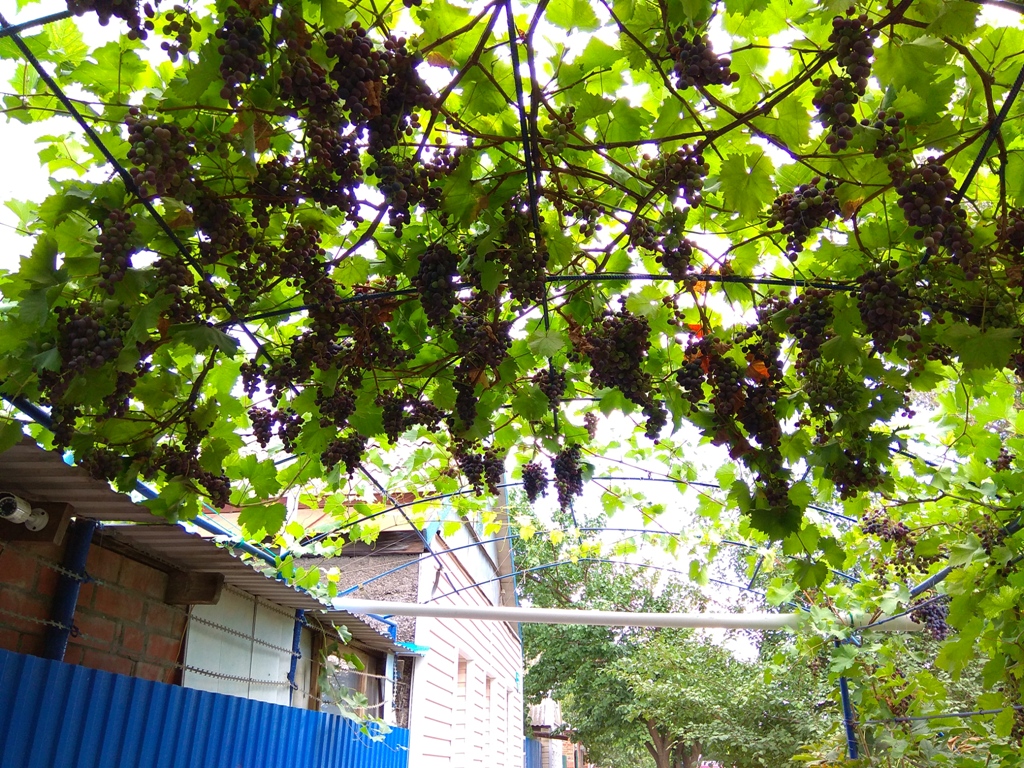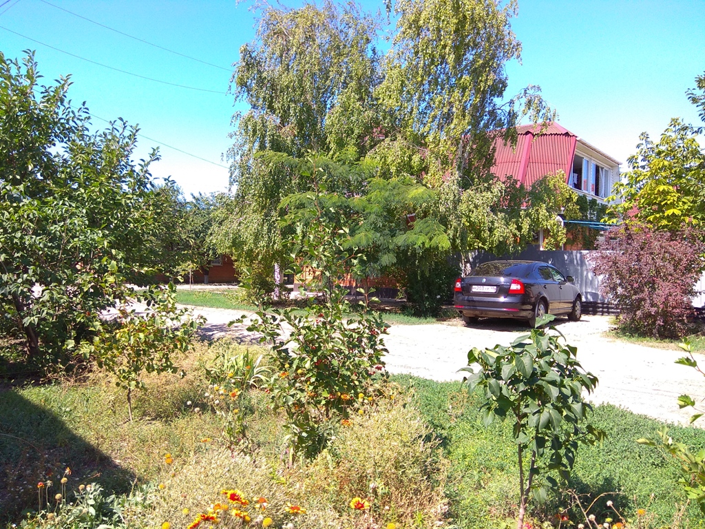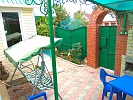 Итак, сутки на поезде и вот нас уже встречает водитель от фирмы и везет в маленький уютный дворик, расположенный в сени виноградных лоз в 6 минутах ходьбы до моря. Жилье я подбирала с учетом минимального количества соседей, и, как оказалось на поверку, выбрала весьма удачно. На первом этаже коттеджа живут хозяева, а на втором, в мансарде, сдаются 2 комнаты со всеми удобствами. Ни соседей, ни хозяев мы почти не видели и не слышали, так что реально были отдых, тишина и покой.