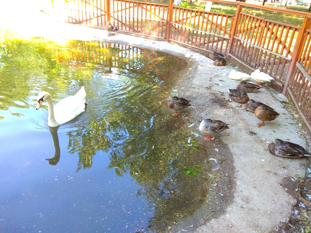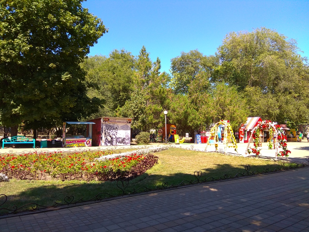 Парков в городе три, мы гуляли в двух. Огромный роскошный парк имени И. Поддубного, в нем музей, памятники известному борцу. Отличное место для отдыха. Парк Горького поменьше, всяких качелей-каруселей много, на территории расположен храм, а при храме имеется пруд с лебедями, водными черепахами; есть вольеры с животными. ФОТО 20-54
