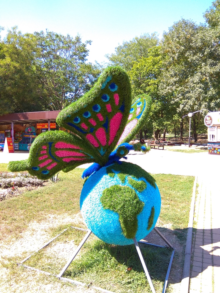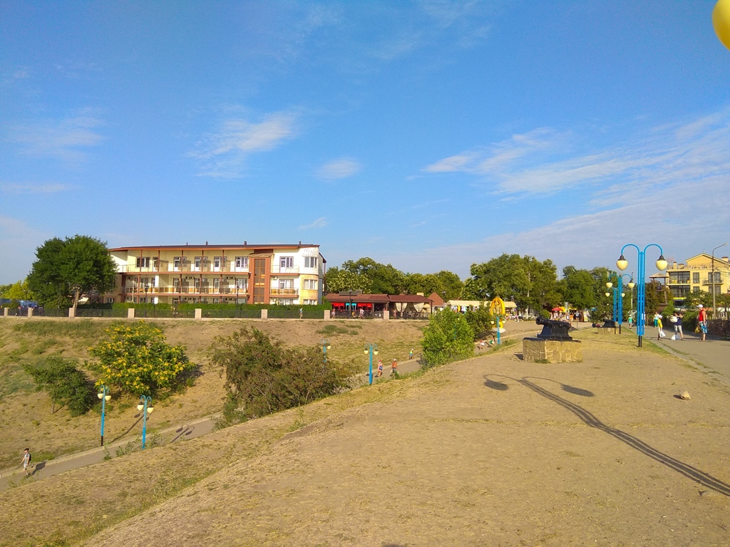 Ейск. Зеленый, чистый, спокойный город, много частного сектора с тихими улочками, залитыми солнцем, переплетениями винограда, ореховыми деревьями, акациями, каштанами, цветочными клумбами. Дома разномастные: и старого образца, кирпичные, с такими трогательными деревянными ставнями, и новостройки-коттеджи, обшитые сайдингом, облицованные декоративным камнем. В центре –обычные пятиэтажки, магазины, кафе. Парки со множеством аттракционов и всевозможных развлечений для детей.. Молодой город, можно сказать, юный. Всего 170 лет. Ефремову для сравнения 381, Туле 872. Все заточено под семейный отдых с детьми. Народу вроде бы много, правда много, но как-то не напрягает.. Контингент отдыхающих- родители с детьми всех возрастов, от нескольких месяцев до подросткового. Много пенсионеров. Встречались большие семьи: дедки-бабки, мамы-папы и 2-3 детей. ФОТО 1-7.