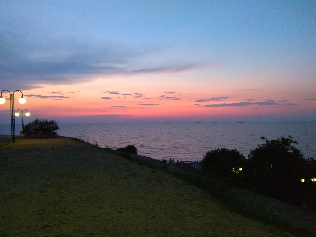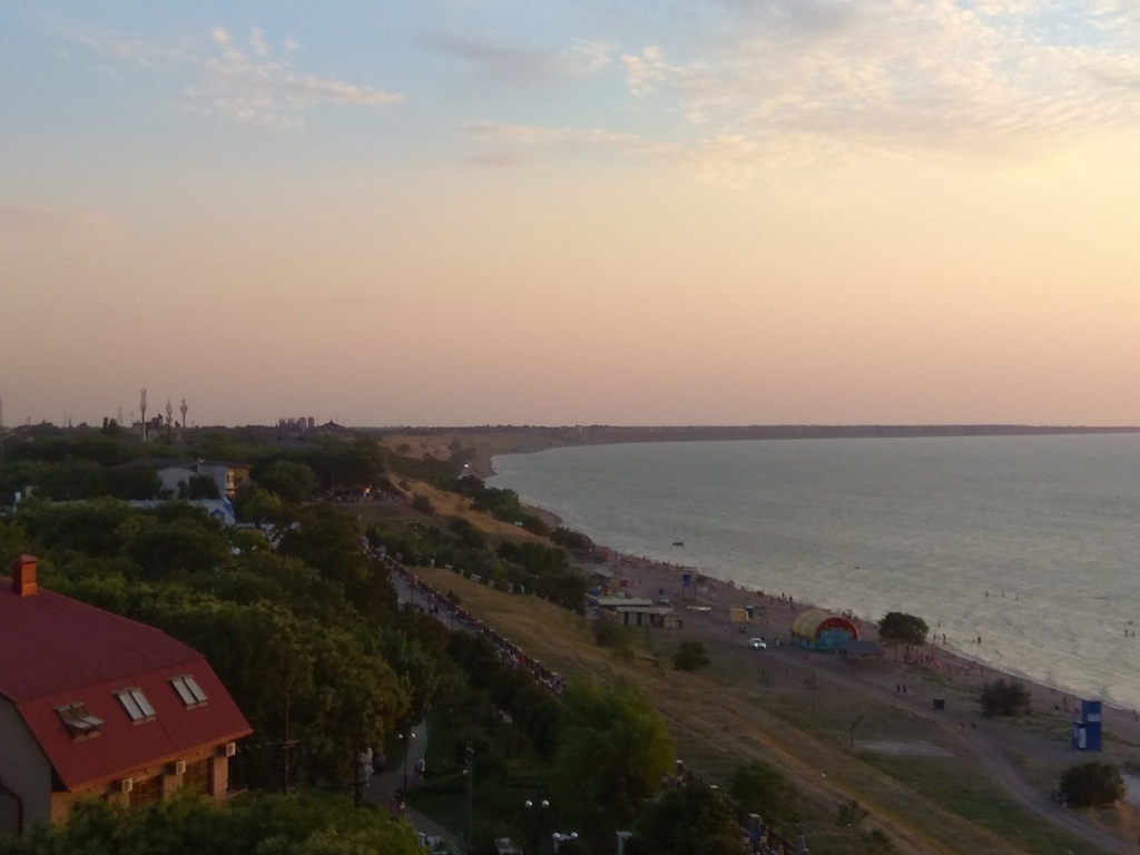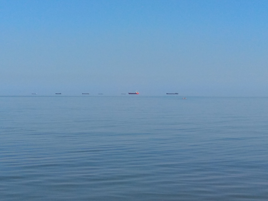 Запомнился один день, когда вода была реально как парное молоко, имхую, градусов 28-30. Она все дни была теплая, но в этот – прямо горячая. Мы купались, пока не стемнело, уходить просто не хотелось. Вообще в Ейске климат хороший, но вот только у моря часто дует сильный ветер, тем, кто с зонтами от солнца, это создает неудобство. Ну и всякие шляпы- панамки, надувные круги и мячи постоянно улетают, народ бегает, ловит.. Еще один день отмечу, когда море стало голубого цвета и слилось с небом, без линии горизонта, эдакая молочно-лазурная бесконечность, в которой были «подвешены» корабли (рыболовецкие траулеры?). Это было всего один раз, завораживающее зрелище, фото не передает всей красоты и объема. ФОТО 90-94