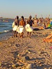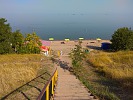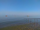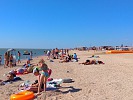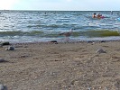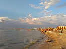 Наш пляж именуется Каменка. Строго говоря, слева Ейский треугольник омывается не морем, а Таганрогским заливом, но не суть. Со стороны лимана (справа) и вовсе делать нечего, я спецом искала жилье в районе Каменки. Пляж очень длинный и неширокий, название говорит само за себя: галька, мелкий ракушечник, встречаются полосы песка. Местами в море ведут сходни через галечник, что очень удобно. Камни или очень скользкие, в водорослях, или облепленные острыми наростами, об которые я в первый же вечер конкретно поранила ногу, кровищи было – уууй, как теркой стесала. Вроде это рыбки бычки икру к камням прикрепляют, вот такие наросты и образуются, доподлинно не знаю. Дно в море песчаное, но местами встречаются россыпи камней, поэтому многие плавали в тапках, постоянно их теряя, так что коллекция одиноких тапочек на ступеньках кафешки обновлялась. А достаточно было запомнить, где камни, и миновать эти участки, не заморачиваясь на аквашузы. Поразительно было то, что нет такой скученности народа, как на черноморских пляжах, где все лежат рядами, как шпроты в банке, носом в чужие шлепанцы. Здесь все как-то рассасывались в пространстве и не мешали. Пляж Каменка чистый, ухоженный, установлены зонтики-навесы, лежаки (ессно, платные), урны. На Центральный пляж мы не ездили, тк не было смысла, поэтому про него ничего не могу сказать. Рядом с портом находится детский пляж Меляки, там, наверное, море по колено. Ых, это выражение оправдало себя в полной мере в день перед отъездом. С отливом море ушло, берег оголился метра на 3 или больше, там, где вчера было по грудь, стало по колено, выявились все отмели, по щиколотку. Люди бродили «в поисках глубины», можно было уйти, наверное, на километр от берега. ... И вода была холодная в этот единственный день, контрастно так с жары, сразу вспомнилась наша река Красивая Меча, в которую входить бррр, ибо ключи подводные бьют. ФОТО 80-89