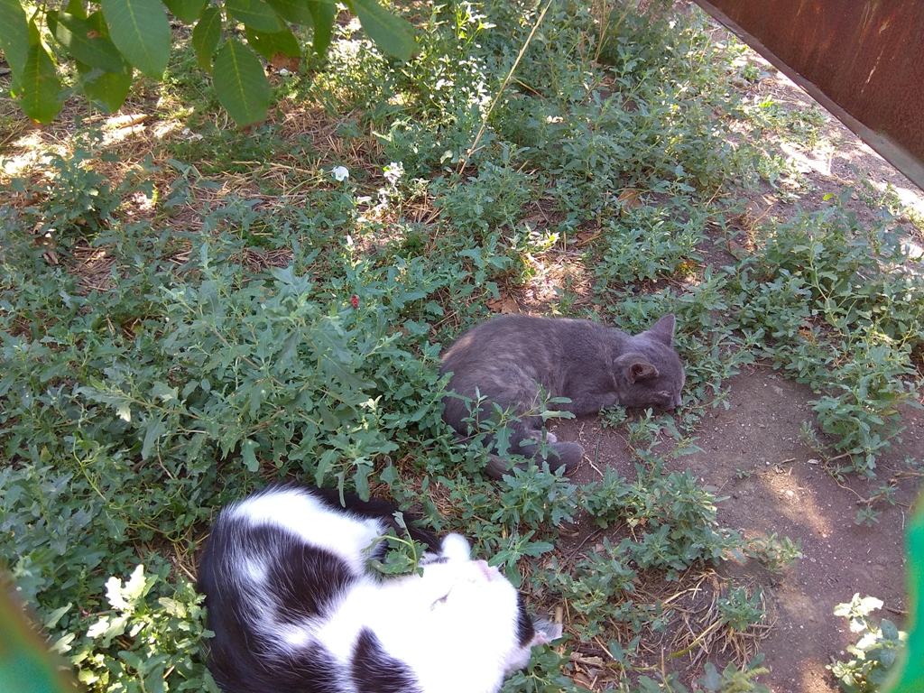 По пути на пляж постоянно встречались питомцы: паслись коники, бегали цобакены, а на территории газозаправочной станции проживало кошачье семейство. Котэ были обласканы вниманием отдыхающих и имели полные еды миски. Черный псё регулярно приходил купаться в море, а однажды улегся отдыхать прямо у меня под боком. Ну и птицыны, особенно смешно летающие против ветра, когда их буквально сдувало в сторону. ФОТО 95-102