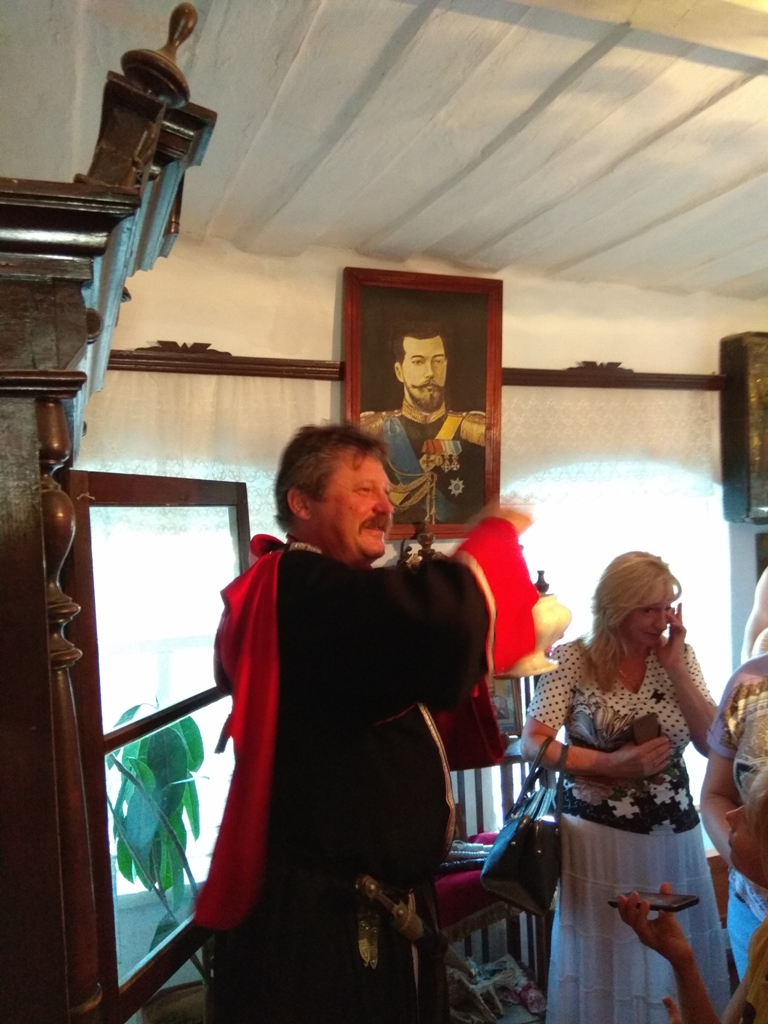 На Вечорках было очень интересно. Хата-музей с огромной коллекцией всевозможных экспонатов (упряжь, посуда, монеты, оружие, фотографии, прялки, коллекция старинных утюгов, вышитые рушники, занавески с подзорами и тд и тп). Определенно есть на что посмотреть! Колоритные атаман (риальне казачий сотник, погранец) и его помощница. Оба очень интересно рассказывают, с душой, это располагает к себе, с юмором переданы атмосфера и быт казачьего подворья. Атаман не ряженый, все награды его собственные, он про каждую рассказывал. Сам пишет стихи, поет хорошо. Вечер пролетел незаметно, занятие нашлось и для взрослых и для детей. ФОТО 103-122